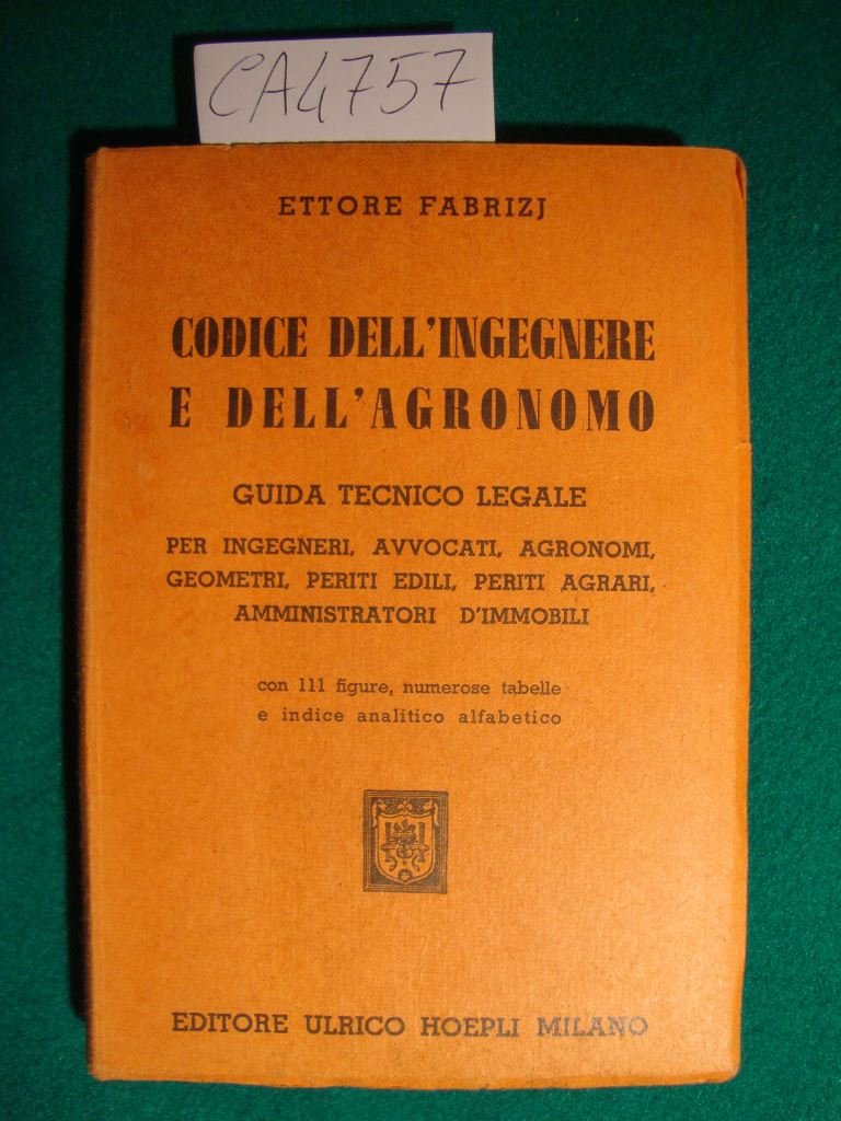 Codice dell'ingegnere e dell'agronomo - Guida tecnico legale per ingegneri, avvocati, agronomi, geometri, periti edili, periti agrari, amministratori d'immobili | Livres anciens et modernes | Fabrizj Ettore