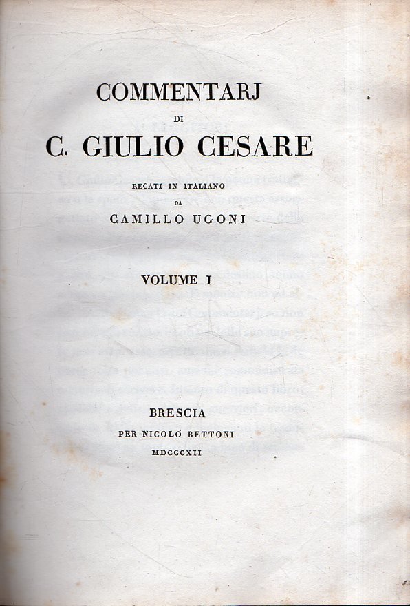 Commentarj di C. Giulio Cesare ( 2 vol.) | Livres anciens et modernes | Ugoni, Camillo, ,Ugoni, Camillo