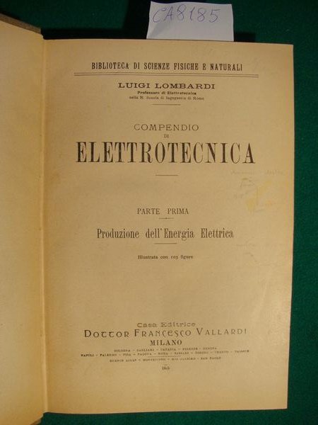Compendio di elettrotecnica - Parte prima - Produzione dell'Energia Elettrica | Livres anciens et modernes | Lombardi Luigi