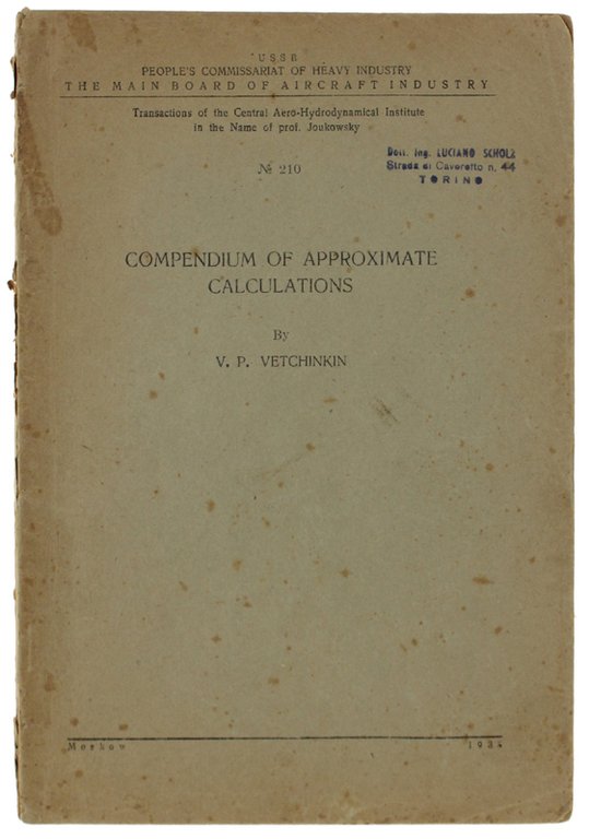 COMPENDIUM OF APPROXIMATE CALCULATIONS. The Main Boaard of Aircraft Industry, N. 210 (russian edition) | Livres anciens et modernes | Vetchinkin V.P.