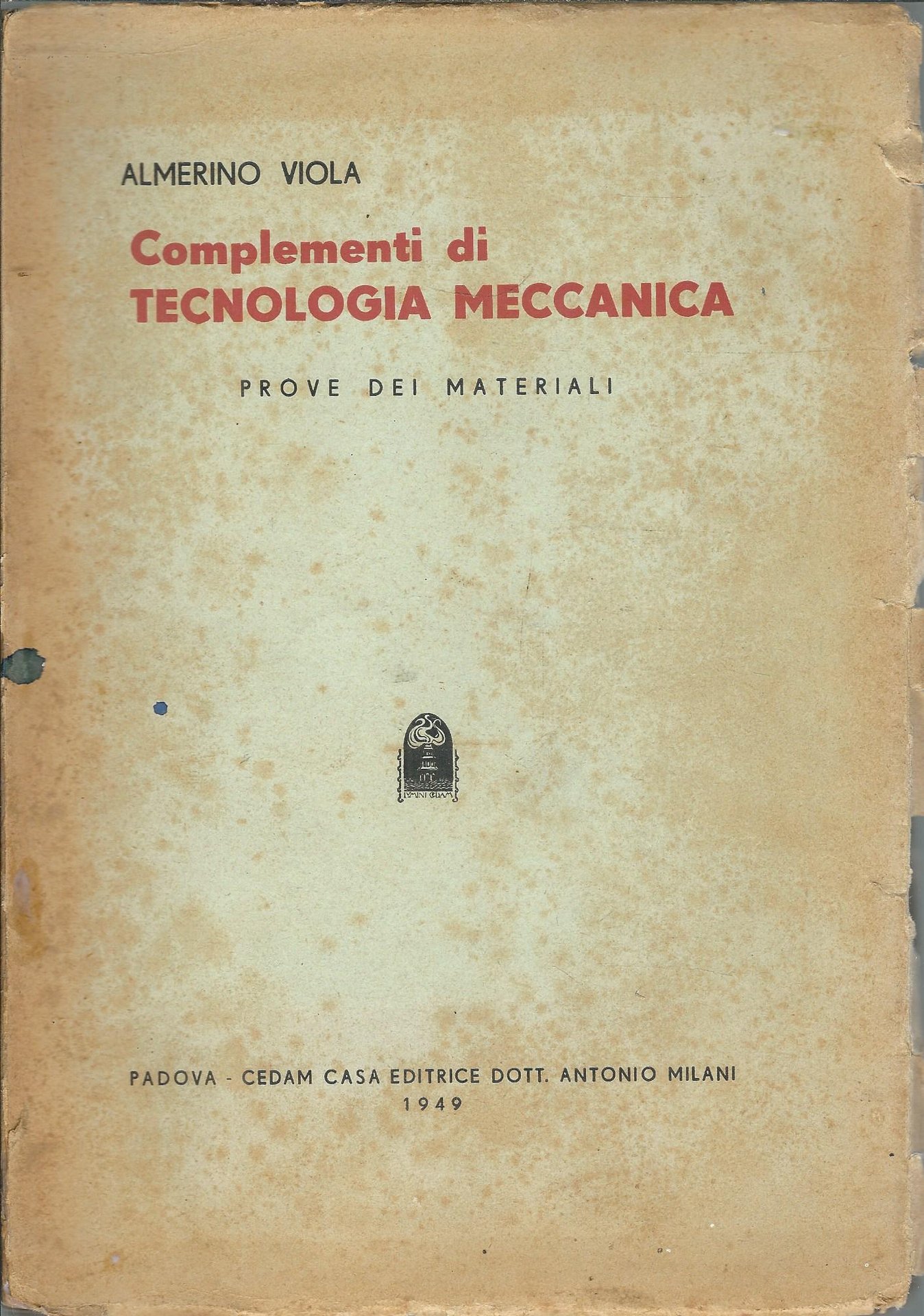 COMPLEMENTI DI TECNOLOGIA MECCANICA | Livres anciens et modernes | Almerino Viola