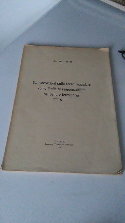 CONSIDERAZIONI SULLA FORZA MAGGIORE COME LIMITI DI RESPONSABILITA' DEL VETTORE FERROVIARIO | Livres anciens et modernes | AVV. UGO BETTI