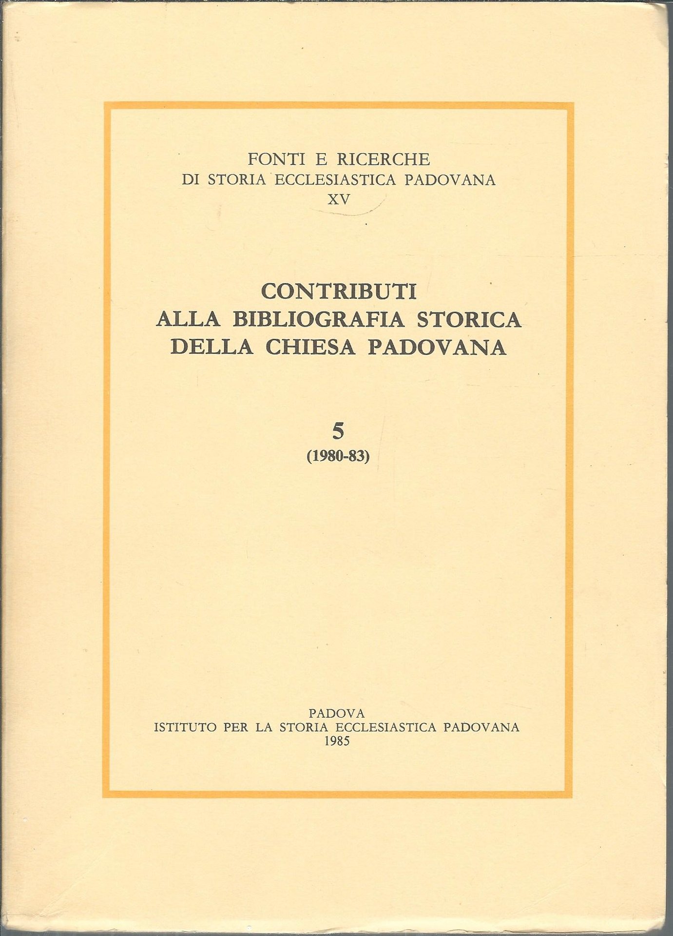 CONTRIBUTI ALLA BIBLIOGRAFIA STORICA DELLA CHIESA PADOVANA - 5 - ( 1980 - 83 )