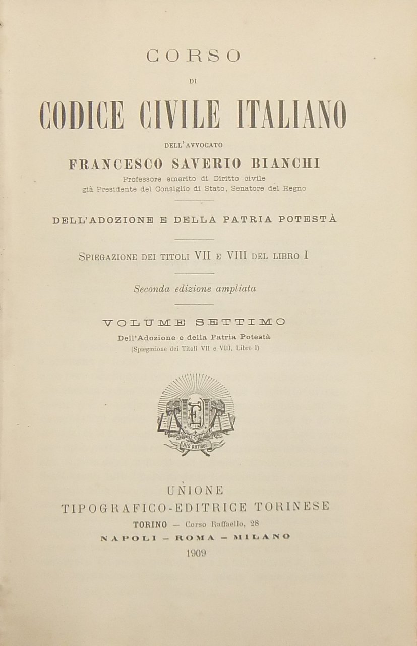 Corso di Codice civile italiano. Vol. VII - Dell'adozione e della patria potestà | Livres anciens et modernes | Bianchi Francesco Saverio