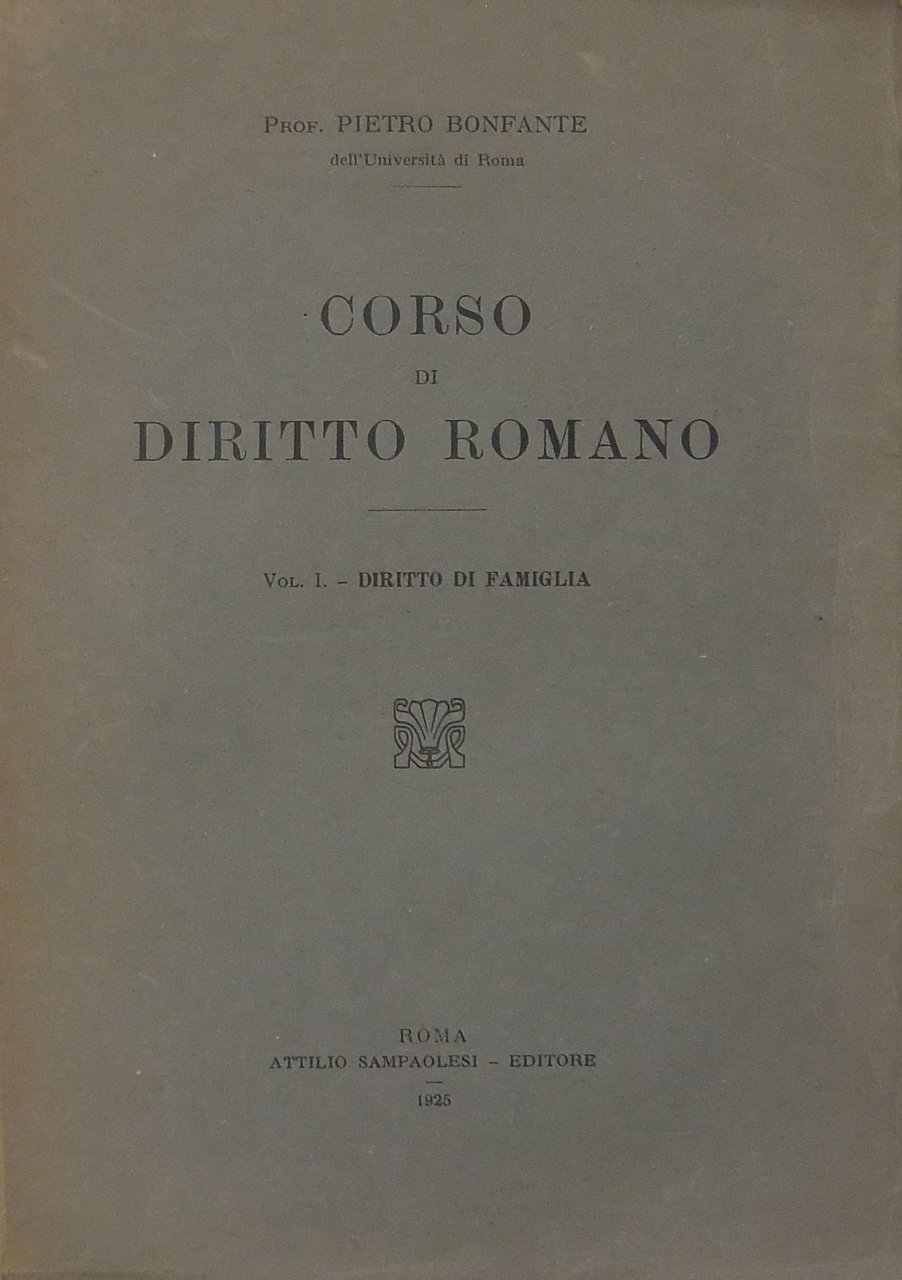 Corso di diritto romano. Vol. I - Diritto di famiglia | Livres anciens et modernes | Bonfante Pietro (1864-1932)