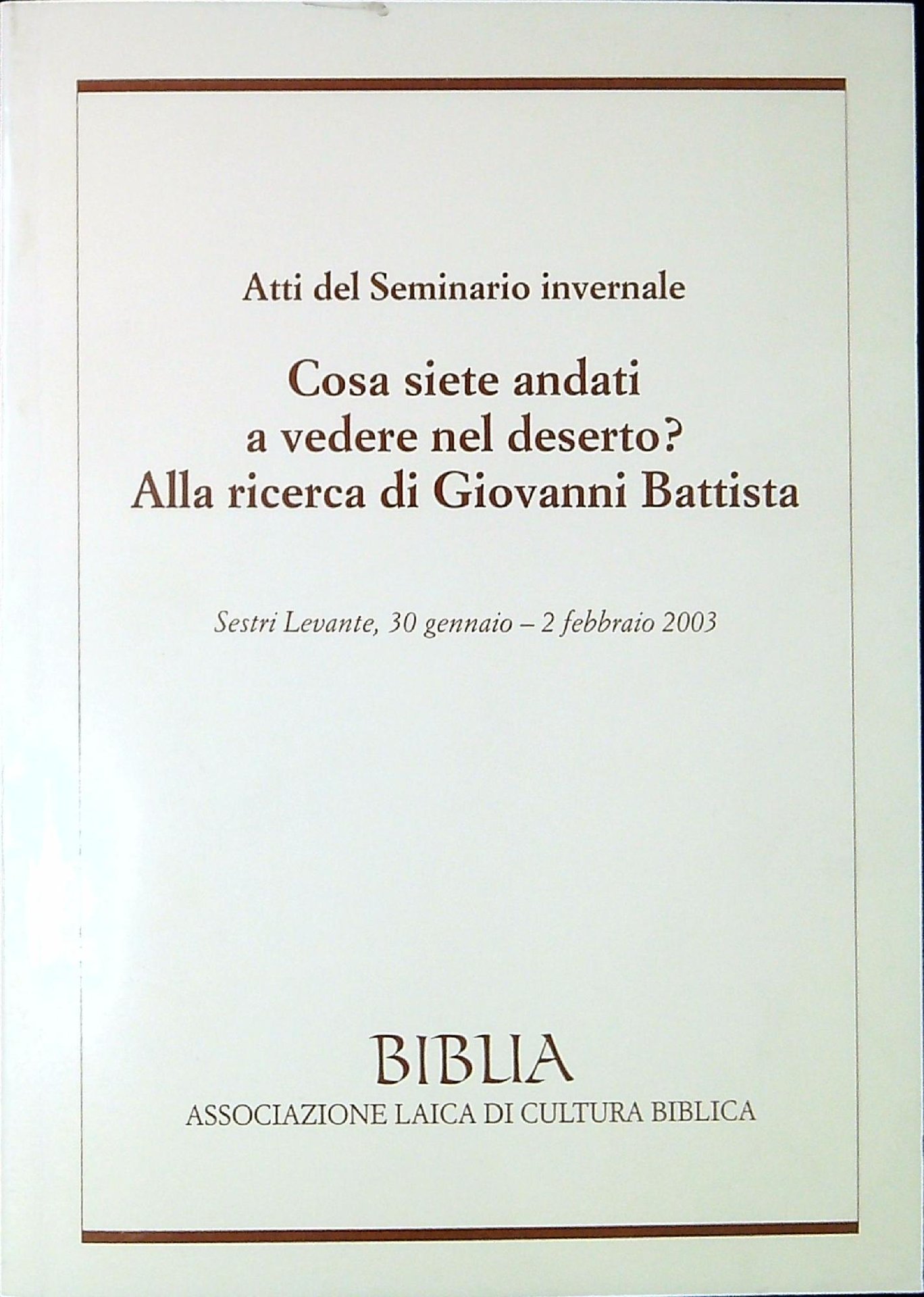 Cosa siete andati a vedere nel deserto? alla ricerca di Giovanni Battista : atti del Seminario invernale : Sestri Levante, 30 gennaio-2 febbraio 2003