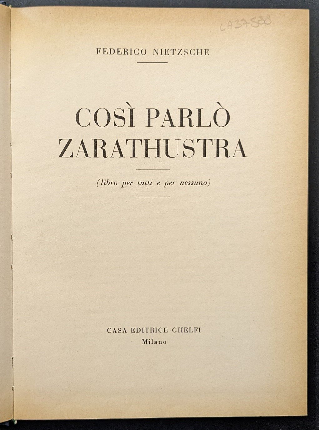 Libro vintage. Argomento: Saggi. Autore: Nietzsche Friedrich. Editore: Ghelfi. Luogo: Milano. Anno: n.d. Formato: in-8°. Pagg: 331. Legatura: Cartonata. Conservazione: buona. Titolo impresso sul dorso, piatto muto. Tagli ingialliti.