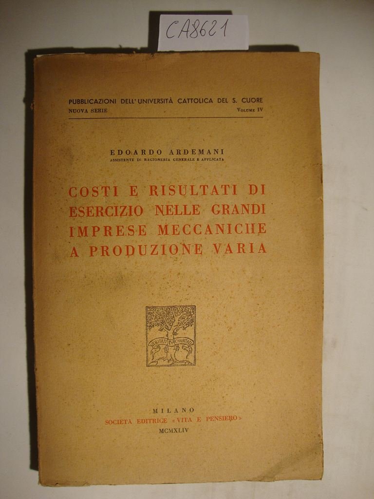 Costi e risultati di esercizio nelle grandi imprese meccaniche a produzione varia | Livres anciens et modernes | Ardemani Edoardo