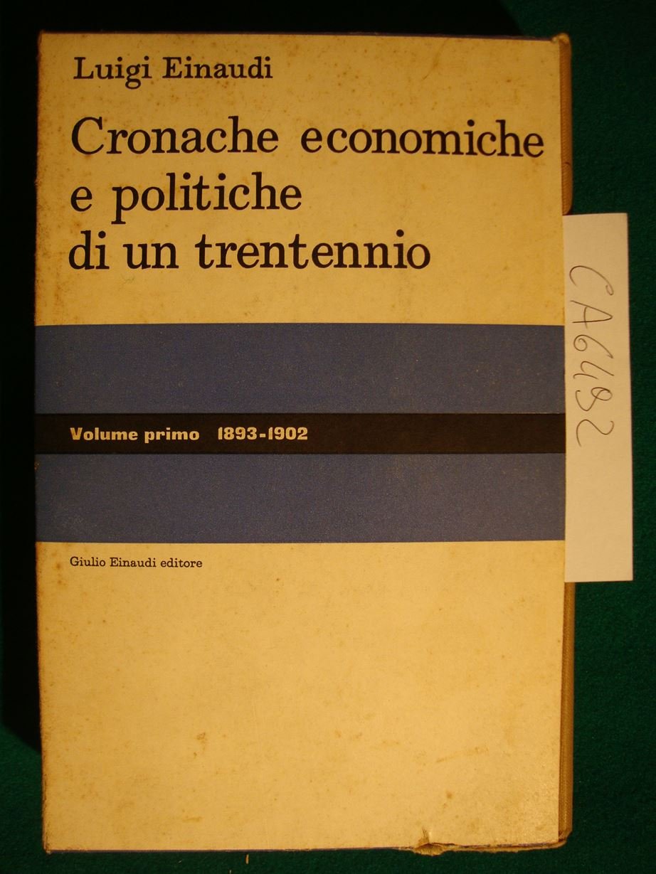 (Collana : Opere di Luigi Einaudi / Seconda serie - n. 3) Primo volume, in se completo, con cui l'illustre economista e uomo di stato raccoglie gli articoli pubblicati a partire dal 1893 su giornali e riviste. In questo vol. si toccano i più vari problemi di amministrazione, di legislazione finanziaria, di politica commerciale e creditizia, e temi e programmi più strettamente politici nei quali si afferma la fede liberale dello scrittore. Conservata all'interno la scheda bibliografica Einaudi - DETTAGLIO DELLE CONDIZIONI : Firma di originaria appartenenza alla pag. di guardia. Fioriture ai tagli. Marginali danni, macchie e fioriture al contenitore cartonato - .