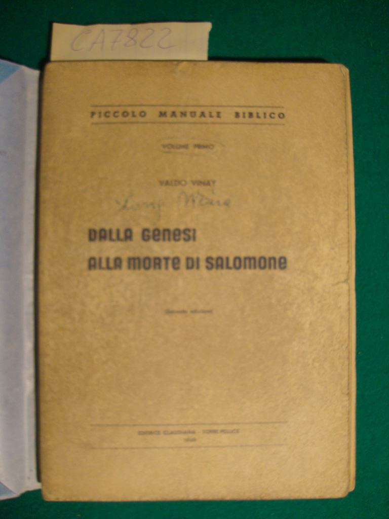 Dalla Genesi alla morte di Salomone (Volume primo) | Livres anciens et modernes | Vinay Valdo