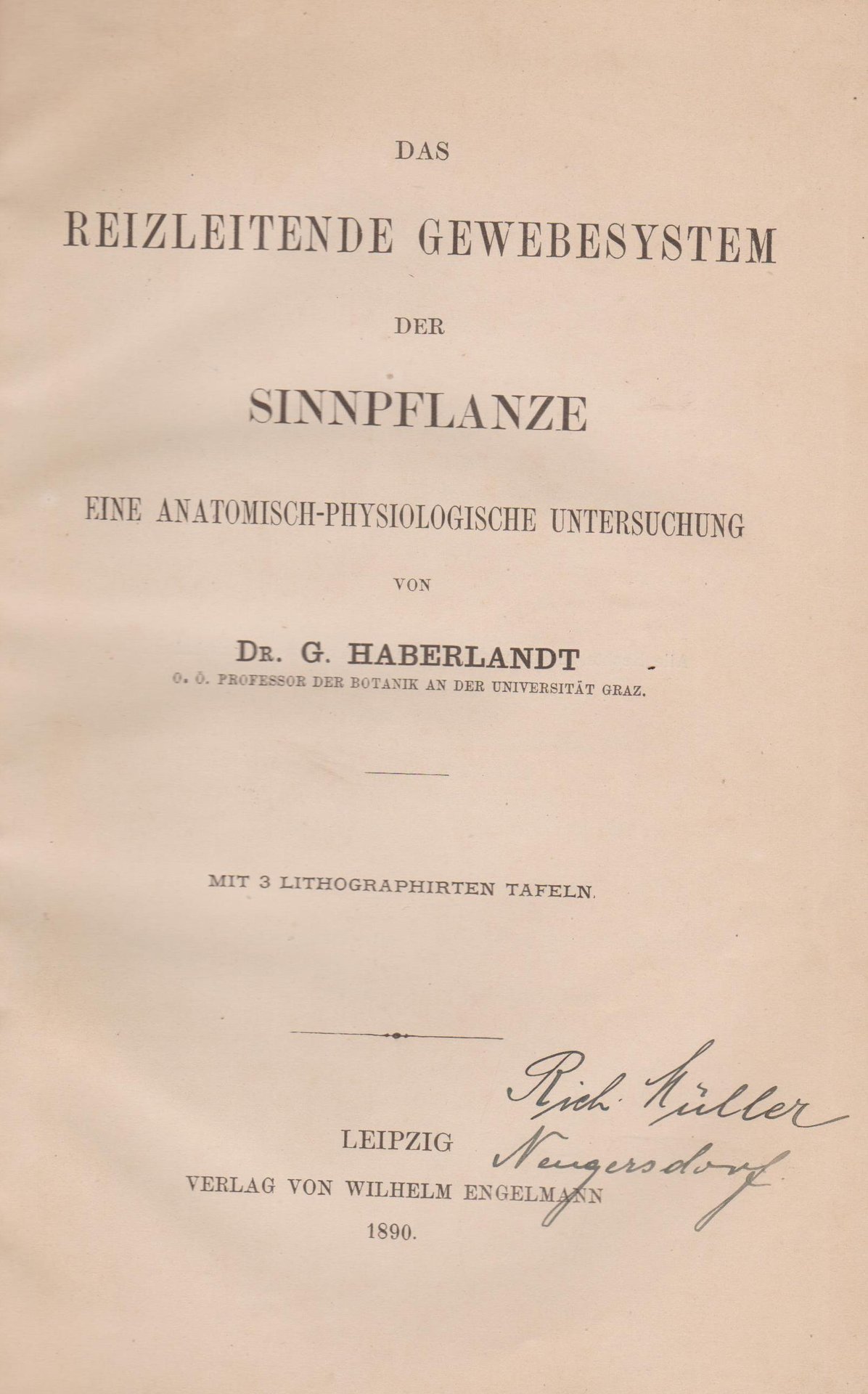 Das reizleitende Gewebesystem der Sinnpflanze. | Livres anciens et modernes | Haberlandt, G.