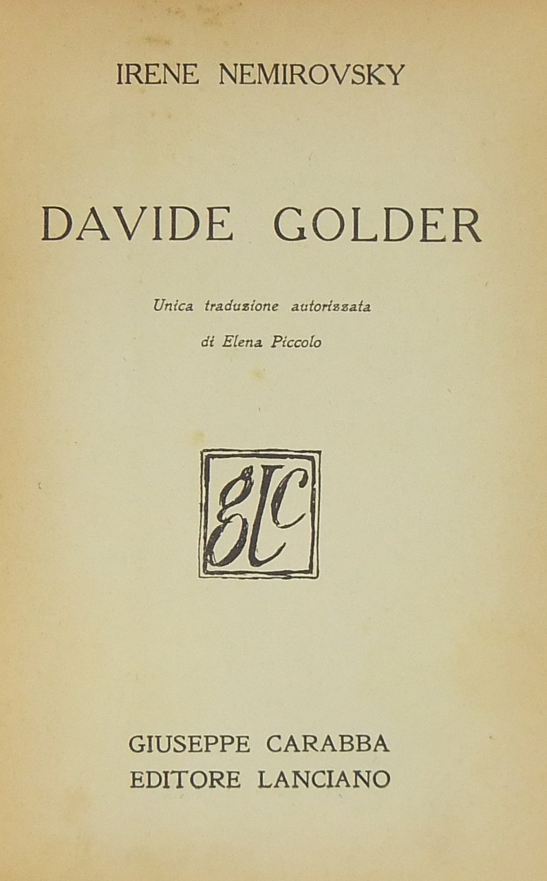 Davide Golder. Unica traduzione autorizzata di Elena Piccolo | Livres anciens et modernes | Nemirovsky Irene