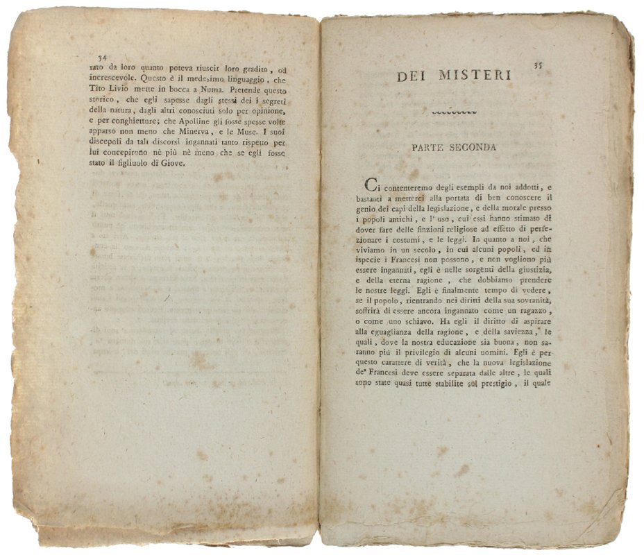 DEI MISTERI. Operetta politico – religiosa di Dupuy recata nell’italiana favella da Basso Galmi di Prelle | Livres anciens et modernes | Dupuis Charles Francois