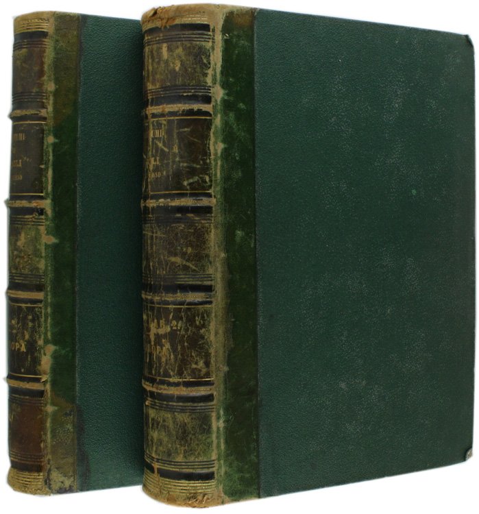 (Codice CW/4011) Volume secondo in 2 tomi in 4º (30x23 cm) 612+735 pp. Il primo tratta la preistoria italica e Roma repubblicana, Il secondo tratta il periodo seguente: da Roma imperiale al 1850 circa. Indici al termine di questo secondo tomo. Molte notizie e curiosità: storia, arti, scienze, costumi ecc. Volumi privi di quasi tutte le tavole, il testo è valido e completo. Qualche ingiallitura. Legature in mezza pelle verde originale con lievi abrasioni, nervetti e titoli oro. Il primo tomo è in buono stato; il secondo è più usato, con strappetti specialmente alle prime e ultime carte (indici), piatti allentati e rinforzati all'interno, una vecchia firma. Sono comunque entrambi solidi e con testi completi. ~~~ SPEDIZIONE IN ITALIA SEMPRE TRACCIATA