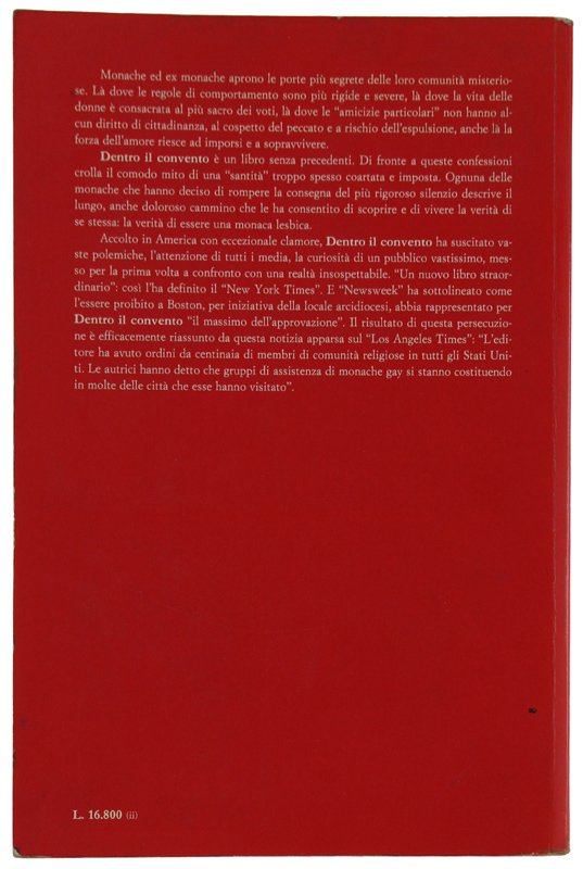 (Codice CU/1697) In 8° 326 pp. Confessioni vere di monache lesbiche americane. Numerosi ritratti. Prima edizione italiana. Brossura editoriale, marginim esterni ingialliti. Buono stato. ~~~ SPEDIZIONE IN ITALIA SEMPRE TRACCIATA