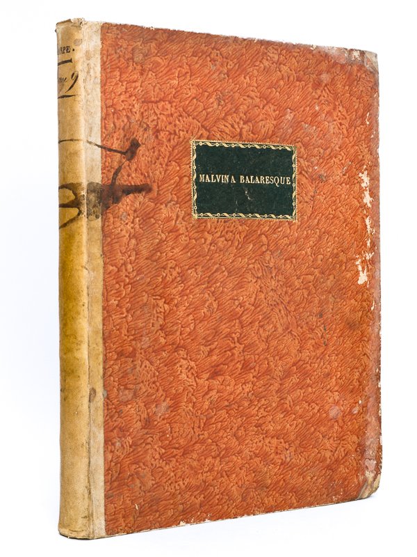 1 vol. grand in-4 reliure de l'époque demi-vélin blanc, supra libris au nom de "Malvina Balaresque", s.d. (circa 1805-1825), Deuxième Grand Concerto dit le Militaire, Pour la Harpe avec Accompagnement de Grand Orchestre, Composé et dédié au Duc de Wellington par N. Ch. Bochsa fils et exécuté par l'Auteur à Londres, Veuve Dufaud & Dubois (avec signature manuscrite), avec étiquette rajoutée Augn Filliatre et Neveu, 31 pp. [ Avec : ] Grand Quintetto pour Forté-Piano Avec Violon, Alto et Violoncelle Obligés, Contre-Basse Adlibi Composé par J. L. Dussek Op 41 ou 47 , Chez Sieber Père, Paris (avec signature manuscrite), avec étiquette rajoutée Augn Filliatre et Neveu, 21 pp. [ Avec : ] Grand Trio pour le Piano-Forte, Violon et Violoncelle, Composé par J. N. Hummel, Chez Sieber Père, Paris (avec signature manuscrite), avec étiquette rajoutée Augn Filliatre et Neveu, 21 pp. [ Avec : ] Trois Trios pour le Piano-Forte, Violon et Violncelle Composés et dédiés A S. A. Mgr Le Prince Charles Lichnowsky par L. Van Beethoven Oeuvre 1 N°1, Chez Sieber Père, Paris (avec signature manuscrite), avec étiquette rajoutée Augn Filliatre et Neveu, 17 pp.[ Avec : ] Grand Trio pour Piano Forte, Clarinette ou Violon et Violoncelle par L. Van Beethoven Op. 11, Chez Pleyel Père et Fils, Paris, 19 pp. [ Avec : ] Sonate pour Forte-Piano avec un Cor ou Violoncelle Composée ou dédiée A Madame la Baronne de Braun par Louis van Beethoven Op. 17 et dédiés A S. A. Mgr Le Prince Charles Lichnowsky par L. Van Beethoven Oeuvre 1 N°1, Chez Sieber Père, Paris (avec signature manuscrite), avec étiquette rajoutée Augn Filliatre et Neveu, 13 pp. [ Avec : ] Variations pour le Piano-Forte avec Violoncelle obligé sur le thème Je vais Revoir l'Amant que j'Aime dans l'Opéra des Mystères d'Isis de Mozart, composées et dédiées A Son Excellence Monsieur Le Comte de Browne, Brigadier au Service de l'Empereur de S. M. l'Empereur de Russie, par Louis van Beethoven, Chez Embault, , avec étiquette rajoutée Augn Filliatre et Neveu, 11 pp. [ Avec : ] Variations sur l'Air des Mystères d'Isis par Mozart La Vie est un Voyage pour Le Piano Forte Avec un Violoncelle obligé Composée par Louis Van Beethoven, Chez Embault, , avec étiquette rajoutée Augn Filliatre et Neveu, 11 pp. [ Avec : ] Trois Sonates pour Piano-Forte Violon & Violoncelle tirées des nouveaux Quintetti de Boccherini par Ignace Pleyel, Oeuvre 1ère Première et deuxième Sonates, Chez Ignace Pleyel, Paris, 43 et 43 pp. [ Avec : ] Ouverture della Gazza Ladra pour le Piano Forte Musique de Rossini, Chez Pacini, Paris, avec étiquette rajoutée Augn Filliatre et Neveu, 11 pp. Beau recueil de partitions gravées. Etat très satisfaisant (une tache d'encre en dos et plat, cartonnage lég. frotté, bon état par ailleurs)