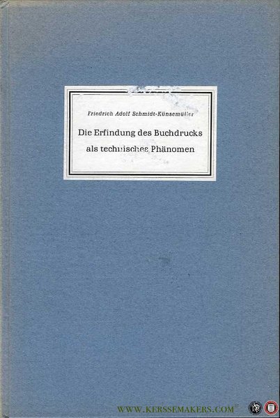 Die Erfindung des Buchdrucks als technisches Phänomen. | Livres anciens et modernes | Schmidt-Künsemüllerer, Friedrich Adolf.
