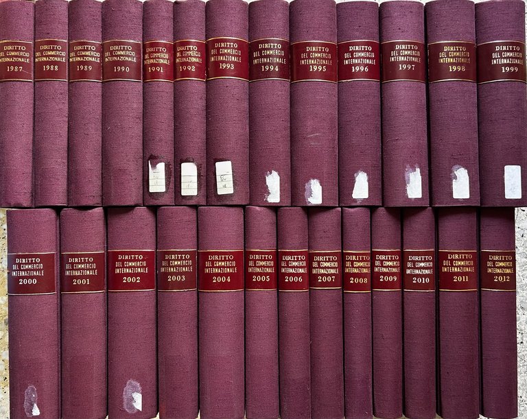 • Collezione completa dal 1987 al 2012. Vecchie tracce di tassello cartaceo alla base del dorso di alcuni volumi