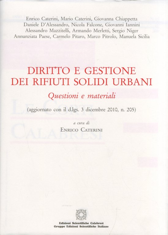 Diritto e gestione dei rifiuti solidi urbani. Questione e materiali. (aggiornato con il d.lgs. 3 dicembre 2010, n. 205), Rende, Edizioni Scientif. Calabresi, 2012