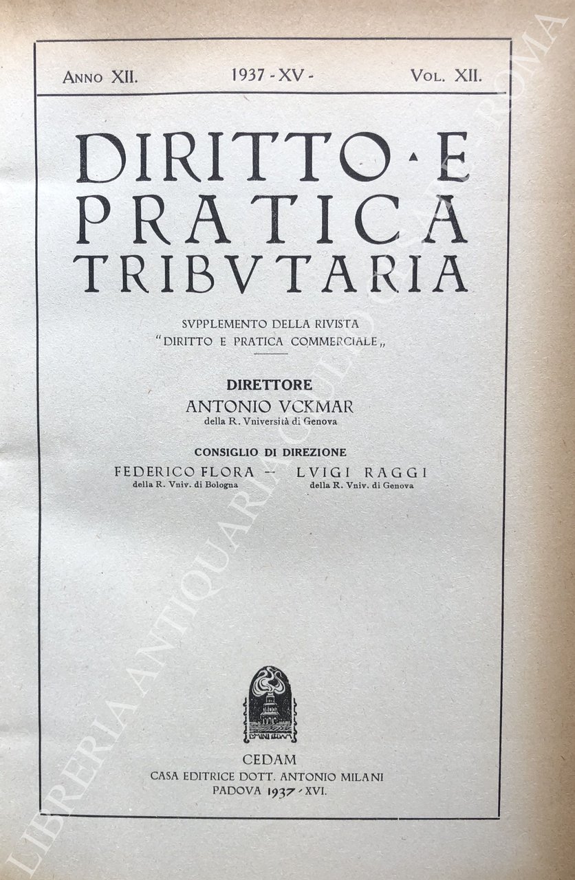 Diritto e Pratica Tributaria. Diretta da Victor Uckmar. Vol. XII - 1937 | Livres anciens et modernes | Autori Vari