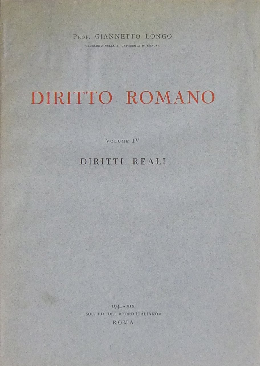 Diritto romano. Vol. IV - Diritti reali | Livres anciens et modernes | Longo Giannetto