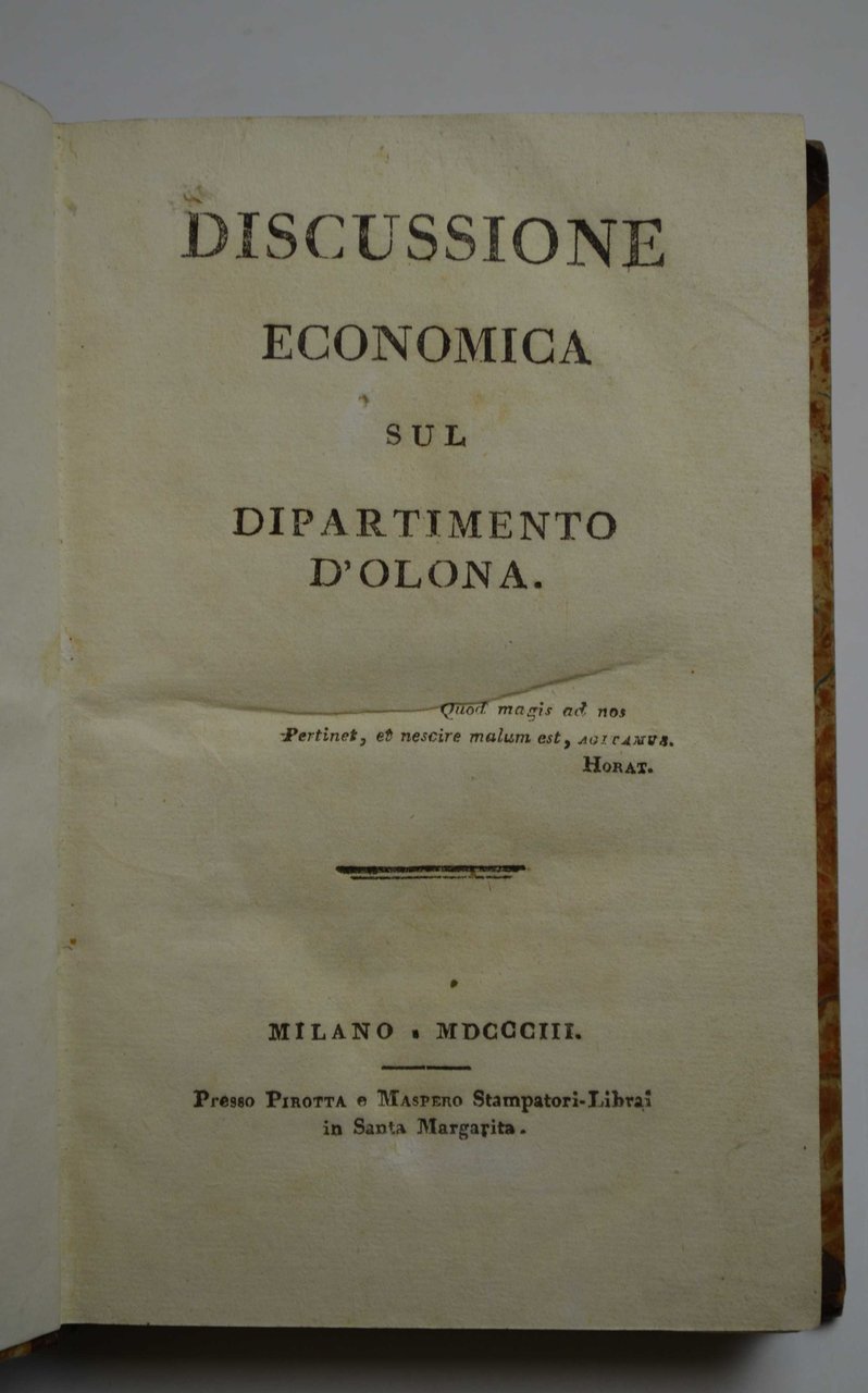 Discussione economica sul dipartimento d'Olona. | Livres anciens et modernes | GIOJA MELCHIORRE.