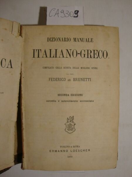Dizionario manuale Italiano-Greco compilato colla scorta delle migliori opere dal Prof. Federico Ab. Brunetti | Livres anciens et modernes | Brunetti Ab. Federico
