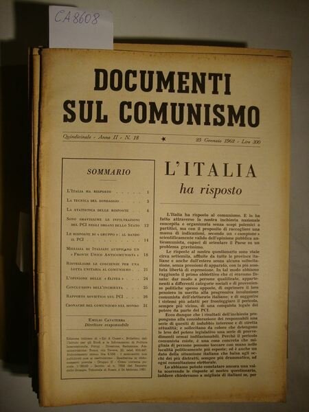 Documenti sul Comunismo - Quindicinale - Anno II (1962) - Numeri vari tra il 18 e il 32 | Livres anciens et modernes | (Autore Non Indicato)