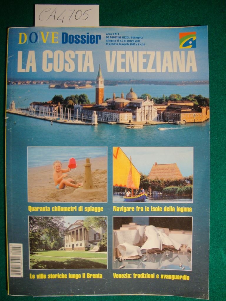 Periodico ill. da imm. fot a col. n.t. e f.t.; allegato a - Dove - n. 3 di Aprile 2003. Tra gli altri argomenti, dalla copertina: Quaranta chilometri di spiagge, Navigare fra le isole della laguna, La ville storiche lungo il Brenta, Venezia: tradizioni e avanguardie.