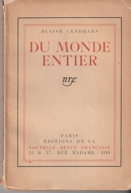 Du mond entier | Livres anciens et modernes | Cendrars Blaise