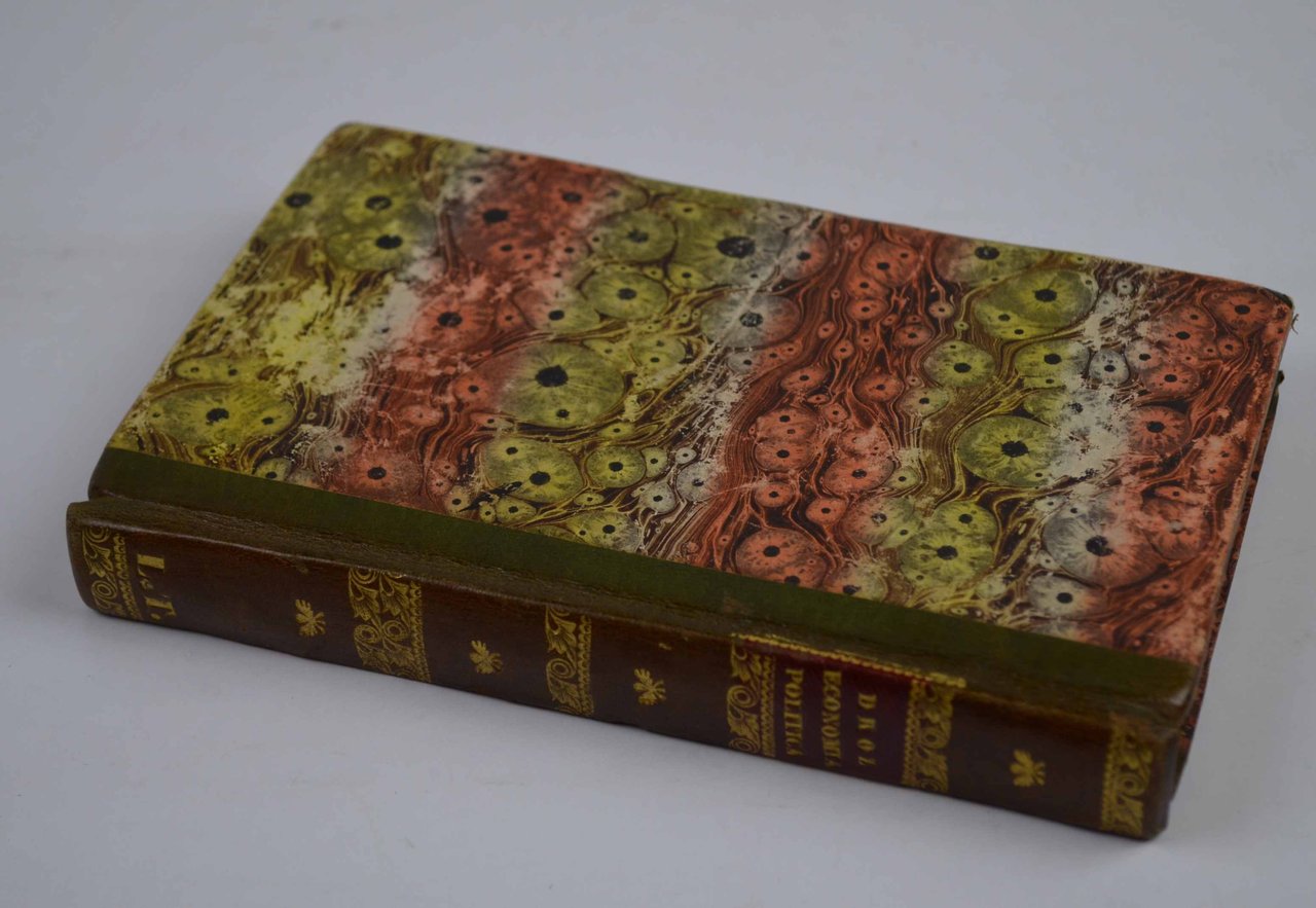Cm. 16,5, pp. 368 (2). Solida ed elegante legatura coeva in mezza pelle verde, dorso liscio con ricchi fregi e titoli in oro su tasselo in marocchino rosso. Esemplare genuino ed in eccellente stato di conservazione. Si tratta della rara prima edizione italiana del trattato "Économie politique, ou Principes de la science des richesses" apparso in originale nel 1829.