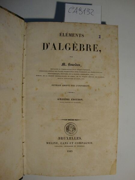 Eléments d'algèbre | Livres anciens et modernes | Bourdon M.