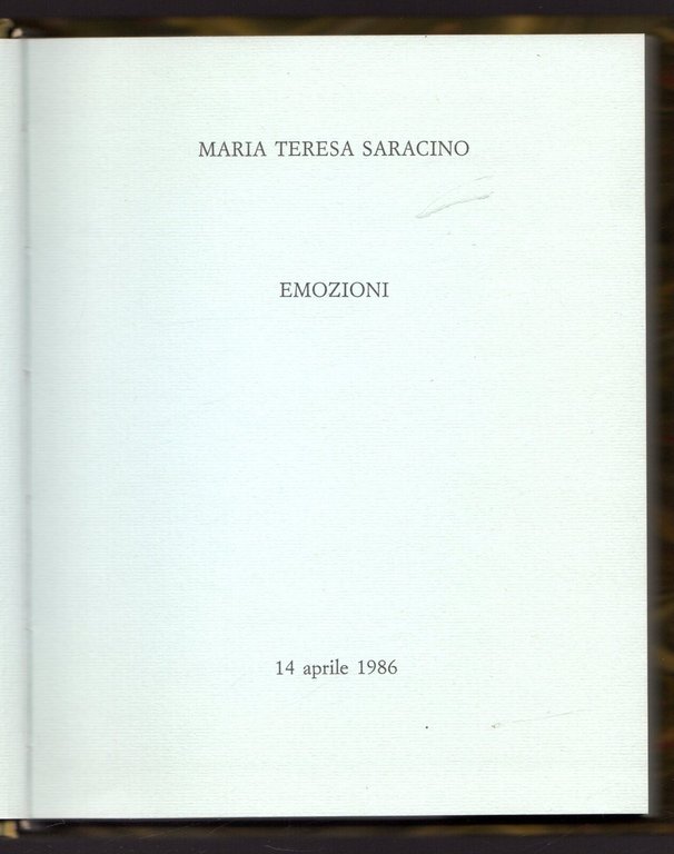 Libro vintage. Argomento: Poesie. Autore: Saracino Maria Teresa. Editore: n.d. Luogo: n.d. Anno: 1986. Formato: in-16°. Pagg: n.d. Legatura: Cartonata. Conservazione: ottima. Note a biro in prima bianca.