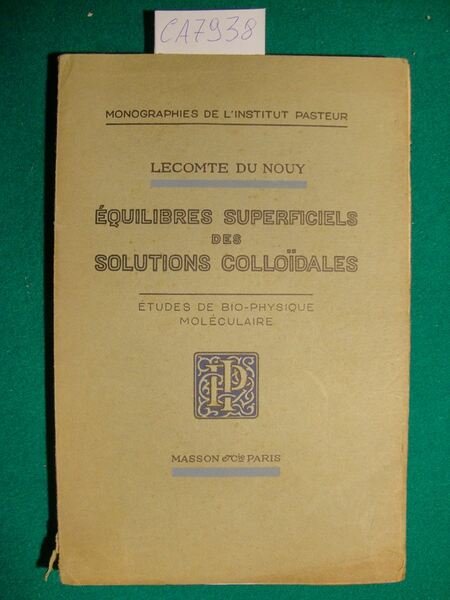 Equilibres superficiels des solutions colloidales - études de bio-physique moléculaire - Préfaces de M. le Dr Alexis Carrel et M. le Prof. Robert A. Millikan | Livres anciens et modernes | Du Nouy Lecomte