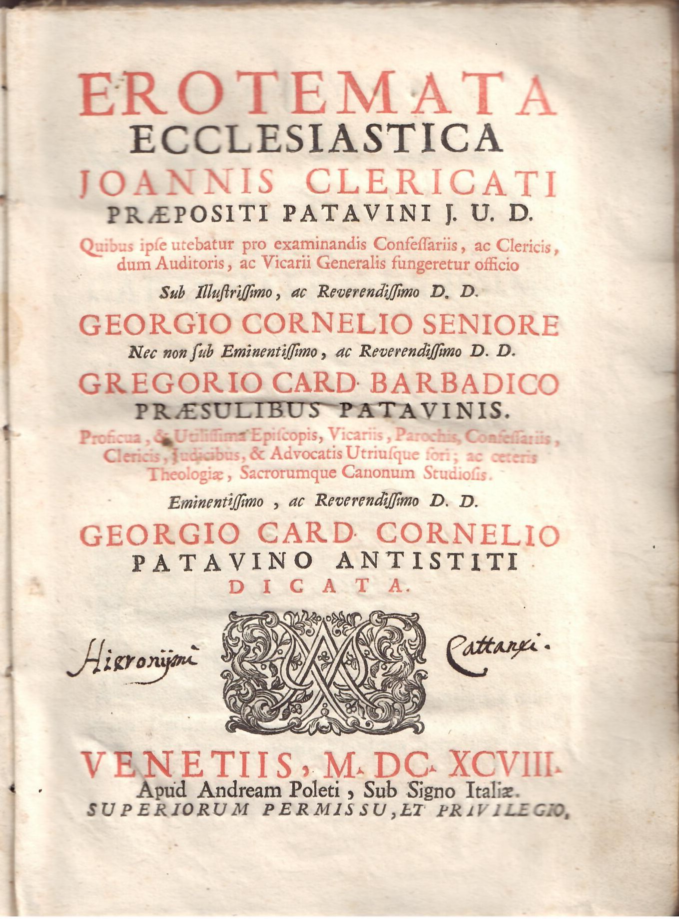 EROTEMA ECCLESIASTICA | Livres anciens et modernes | Joannis Clericati
