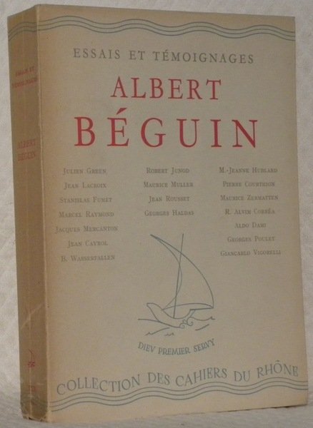 Essais et témoignages. Albert Béguin. Etapes d’une pensée. Rencontres. Textes de J. Green, J. Mercanton, G. Haldas etc. Collection des Cahiers du Rhône, série blanche, n.° 30.