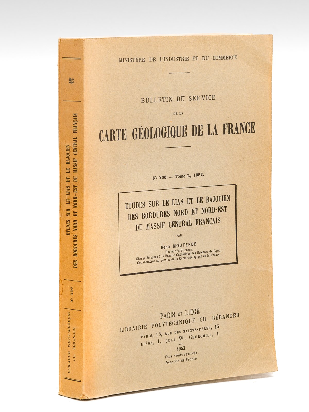 Etudes sur le Lias et le Bajocien des bordures Nord et Nord-Est du Massif Central français. Bulletin du Service de la Carte Géologique de la France. N° 236 - Tome L, 1952 | Livres anciens et modernes | Mouterde, René