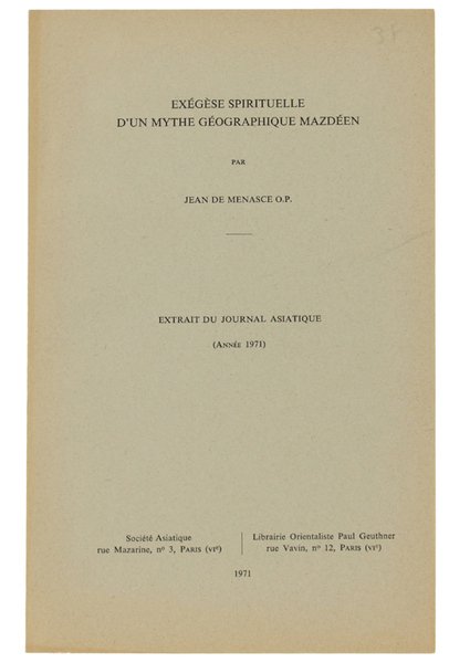 EXEGESE SPIRITUELLE D'UN MYTHE GEOGRAPHIQUE MAZDEEN. (Extrait du Journal Asiatique - Année 1971) | Livres anciens et modernes | De Menasce Jean.