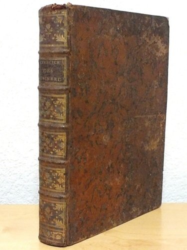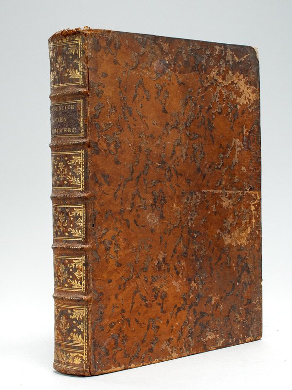 Dédié à Mgr. Hue de Miromesnil, 1 vol. in-4 reliure de l'époque pleine basane marbrée, dos à 5 nerfs orné, Chez Valade, Paris, 1776, 4 ff. et 724 pp.Titre complet : Exercice des Commerçans, contenant des Assertions Consulaires sur l'Edit du mois de Novembre 1563, le titre XVI de l'Ordonnance du mois d'Avril 1667; ensemble sur l'Edit du mois de Janvier 1718, portant établissement d'une Jurisdiction Consulaire en la Ville de Valenciennes : Avec les Déclarations interprétatives, & des Arrêts de Règlement. Des idées, projets & Parères sur la partie des Lettres de change, Billets à ordre & au Porteur, & sur plusieurs autres affaires de Commerce, avec différentes Questions, Remarques & Consultations, suivies d'une chronologie des Ordonnances sur les faillites & banqueroutes Edition originale. Etat très satisfaisant (plats lég. frottés, deux coins frottés, petit frott. et accroc en coiffe sup., petite mouill. angulaire au dernier ff., bon état par ailleurs). Conlon, XVI, 158