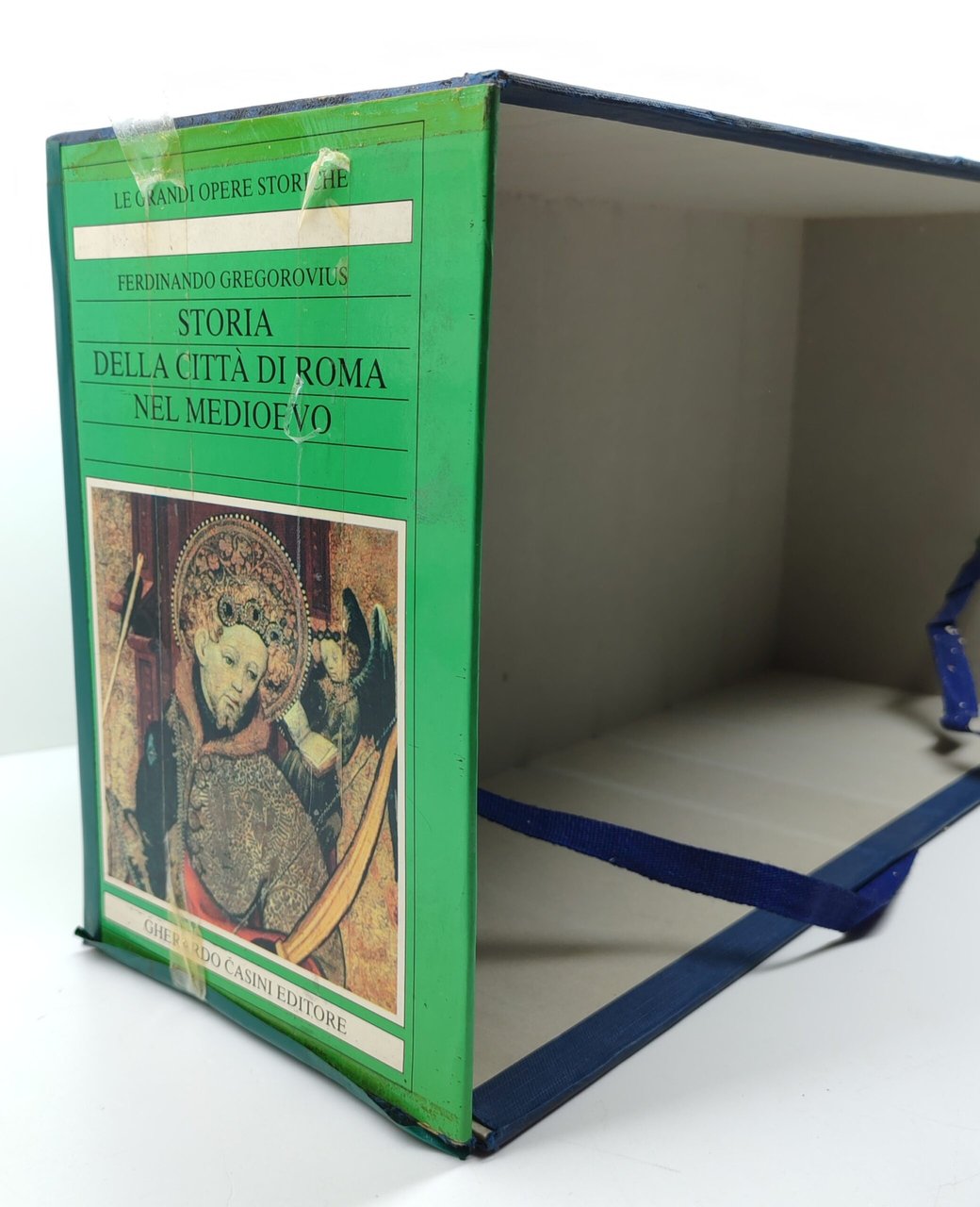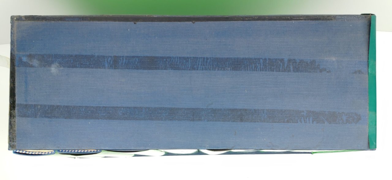 Cofanetto rigido editoriale in precarie condizioni angoli riparati con nastro adesivo, nastro adesivo presente su tutto il perimetro del cofanetto come rinforzo, sovracoperta editoriale con lievissimi segni del tempo, legatura rigida in tela con cornice in oro al piatto anteriore e titolo al dorso, interno molto buono numero pagine 587 + 588 + 545 + 656 +801 + 844 + 778 + 770, dimensioni cm 46,5 * 22,5 * 15,6