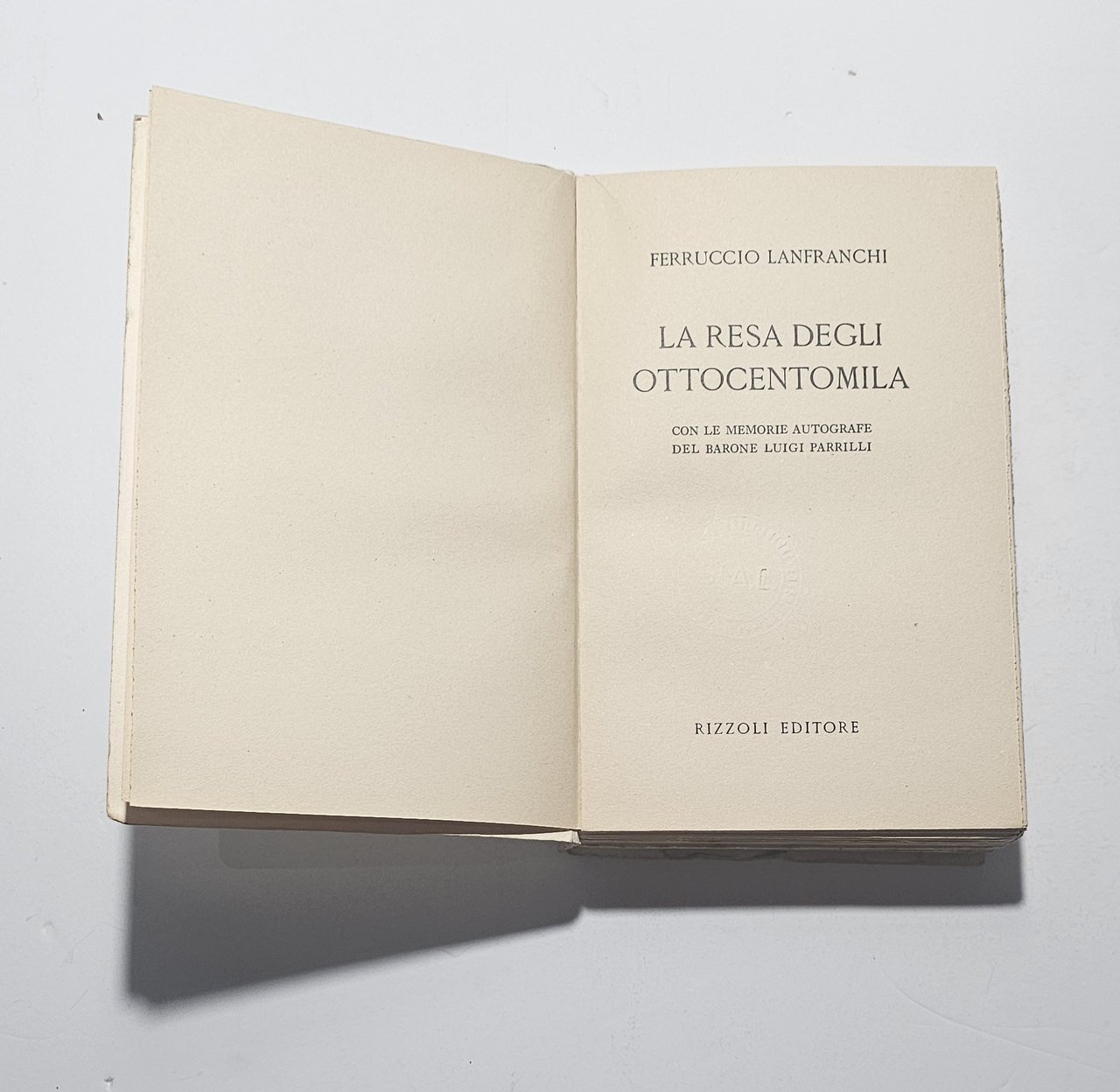 - ferruccio lanfranchi, la resa degli ottocentomila, rsi, repubblica sociale italiana, seconda guerra mondiale, luigi parrilli, fascismo, storia italiana, guerra civile italiana, rizzoli, memorie, libro storico, io libro carmine, libreria antiquaria