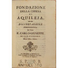 Fondazione della Chiesa di Aquileja. Dissertazione storico critica. | Livres anciens et modernes | Di San Fiorano Carlo Giuseppe