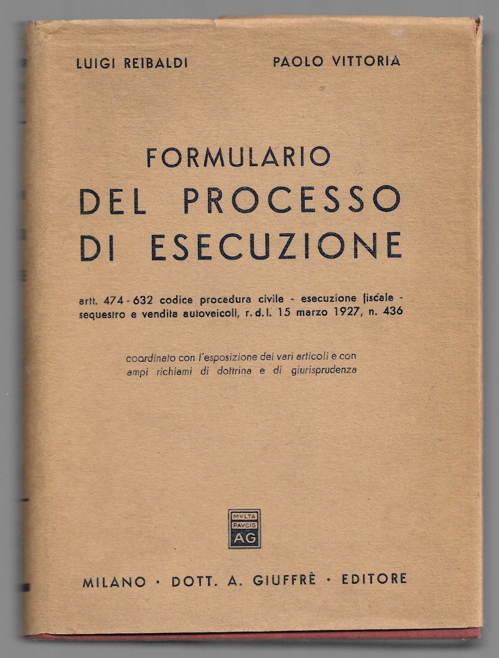 Formulario del processo di esecuzione | Livres anciens et modernes | Reibaldi Luigi - Vittoria Paolo, Reibaldi Luigi - Vittoria Paolo