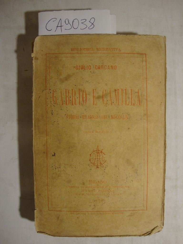 Gabrio e Camilla - Storia milanese del MDCCCLIX (1859) | Livres anciens et modernes | Carcano Giulio