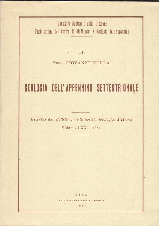 Geologia dell'appennino settentrionale. Volume LXX | Livres anciens et modernes | Prof Giovanni Merla, ,Prof Giovanni Merla