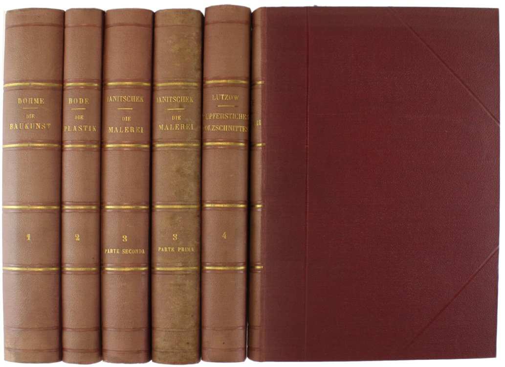 GESCHICHTE DER DEUTSCHEN KUNST. I- Die Baukunst. II- Die Plastik. III-Die Malerei. IV-Der Kupferstich und Holzschnitt. V-Das Kunstgewerbe. | Livres anciens et modernes | Dohme Robert, Bode Wilhelm, Janitschek Hubert, Lippmann Friedric, H, Von Falke Jakob.