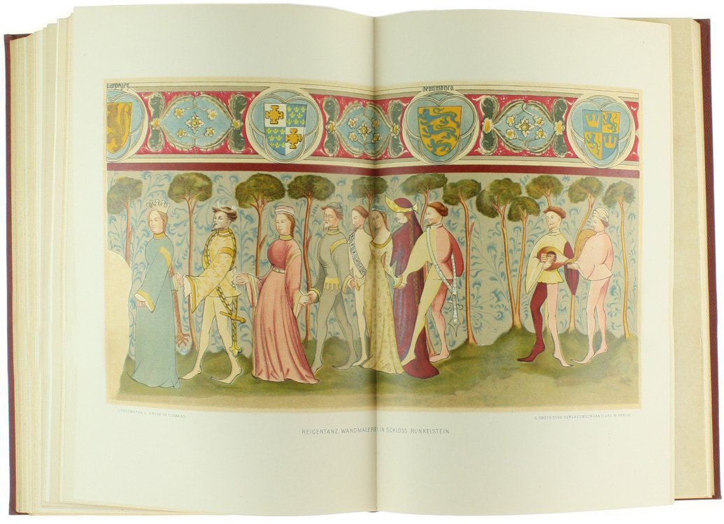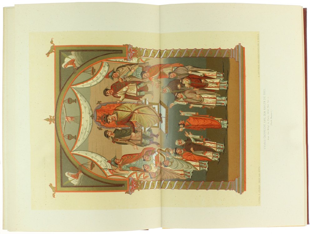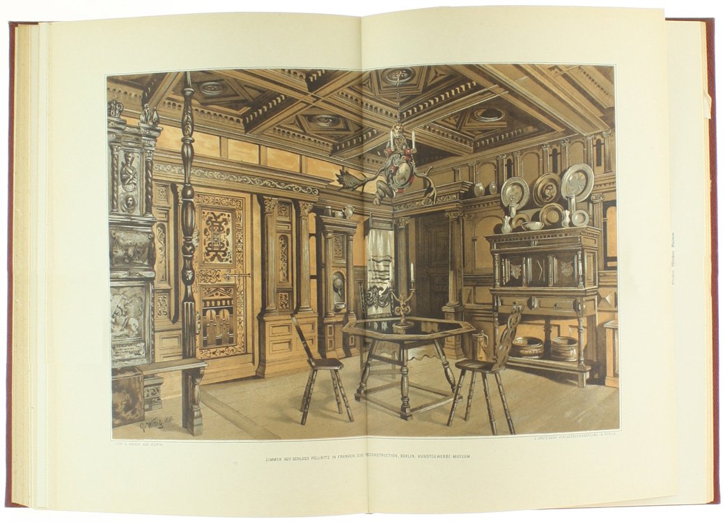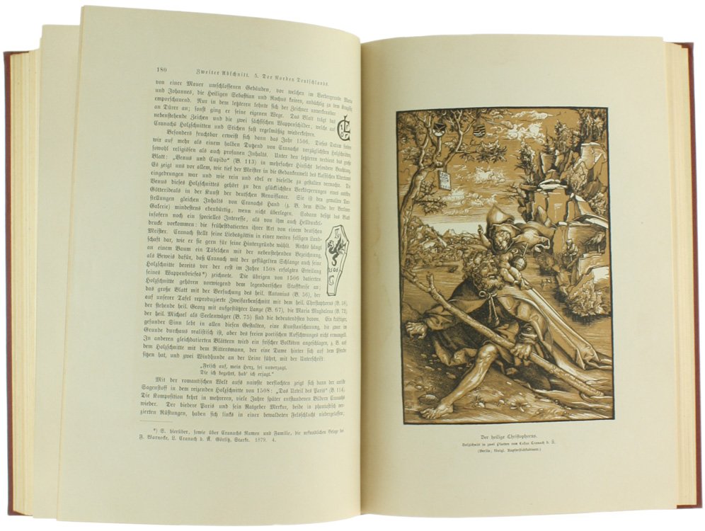 (Codice BV/0328) Complete set, 5 parts bound in 6 volumes, quarto (288x235 cm) 445, 258, 663, 314, 219 pp. Text in german, blackletter. History of german art, VI-XIX century. Each volume is illustrated with hundreds of engravings and many b/w and chromolithographed color plates, some full/double page. I: 54 plates, 1 in color. II: 29 plates, 3 in color. III: 36+45 plates, some folding, 10 in color. IV: 40 plates, 8 in color. V: 32 plates, 4 in color. Firmly bound in contemporary cloth, spines bleached, gilted titles, all in good condition, except some dampstainings to front cover of volume III (part 1). A fine copy. ~~~ SPEDIZIONE IN ITALIA SEMPRE TRACCIATA