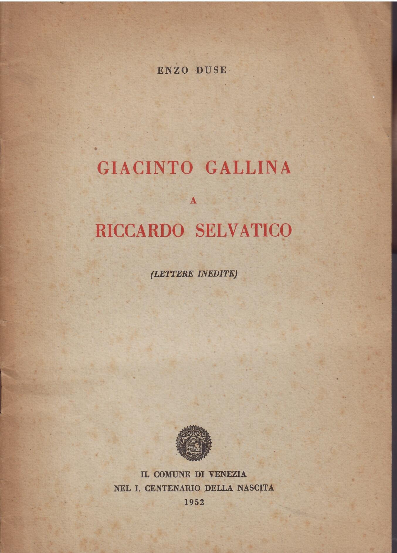 GIACINTO GALLINA A RICCARDO SELVATICO ( LETTERE INEDITE )