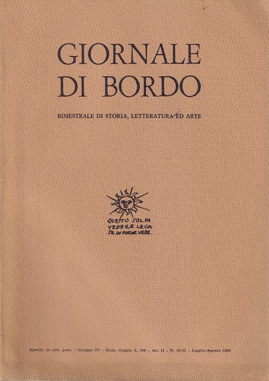 Giornale di bordo. Bimestrale di storia, letteratura ed arte - Anno II, n. 10-11, luglio-agosto 1969