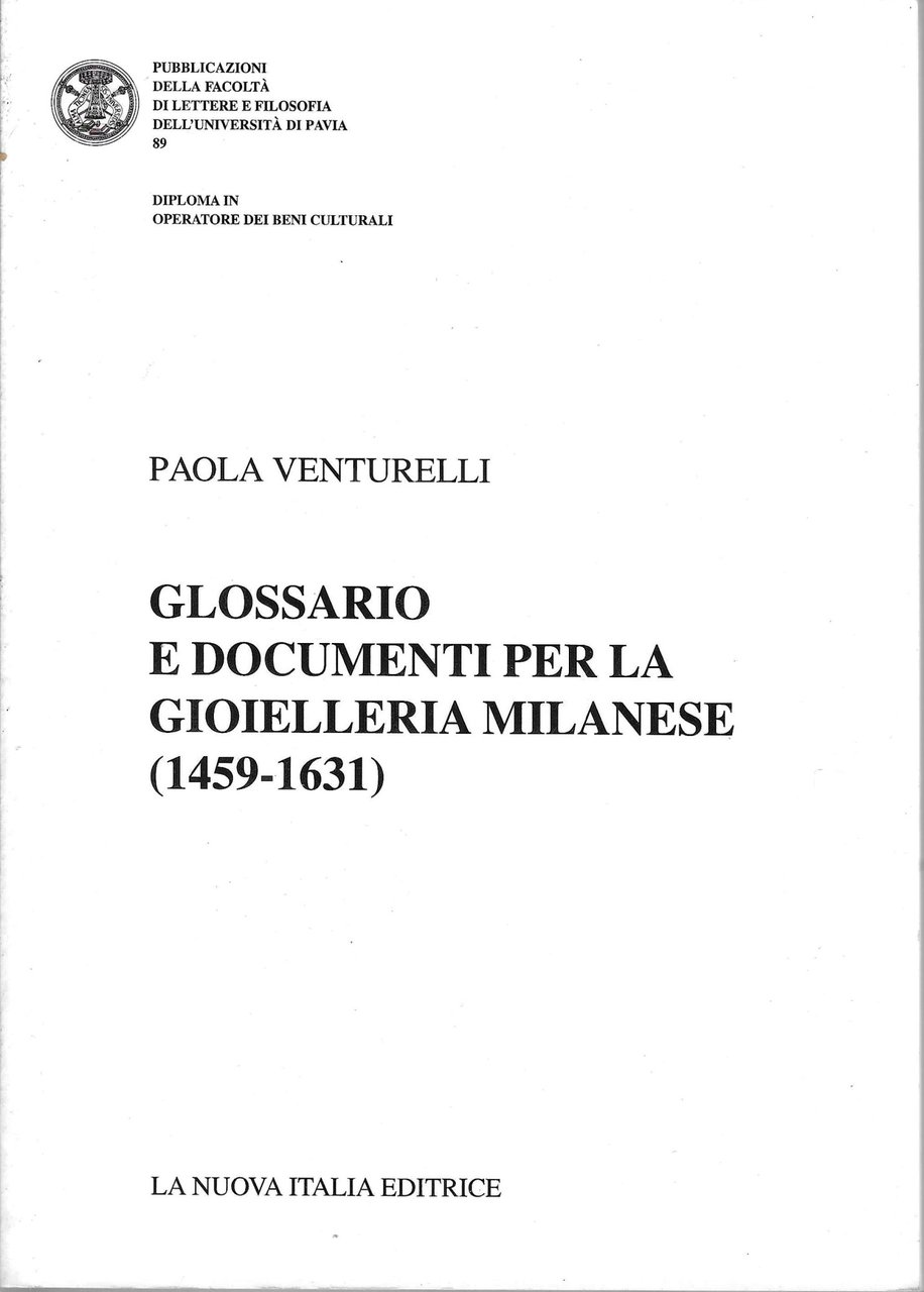 Glossario e documenti per la gioielleria milanese (1459-1631) | Livres anciens et modernes | Venturelli, Paola, ,Venturelli, Paola
